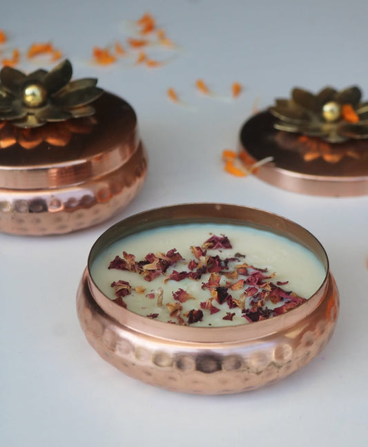 Hammered urli Scented Candle with lid( 5 inches diameter)